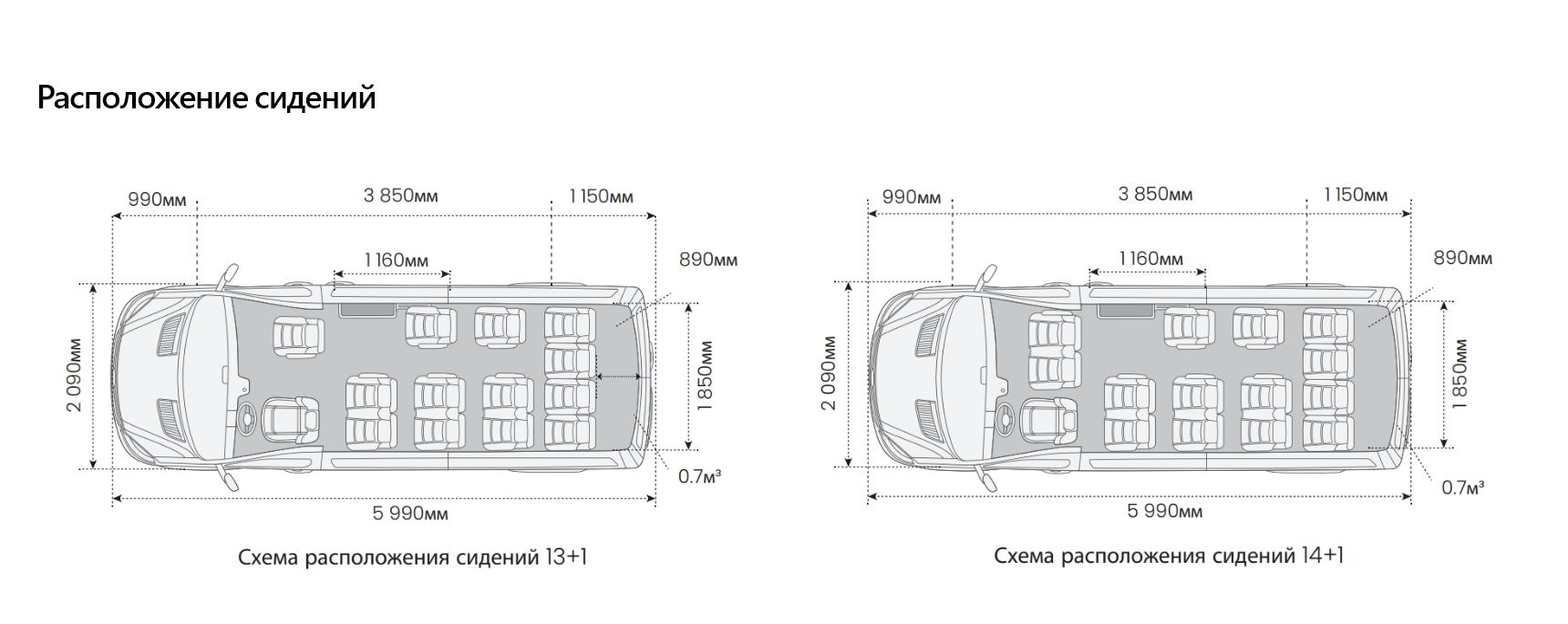 | Посадочные места | 13+1/14+1 |